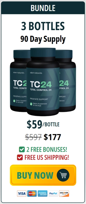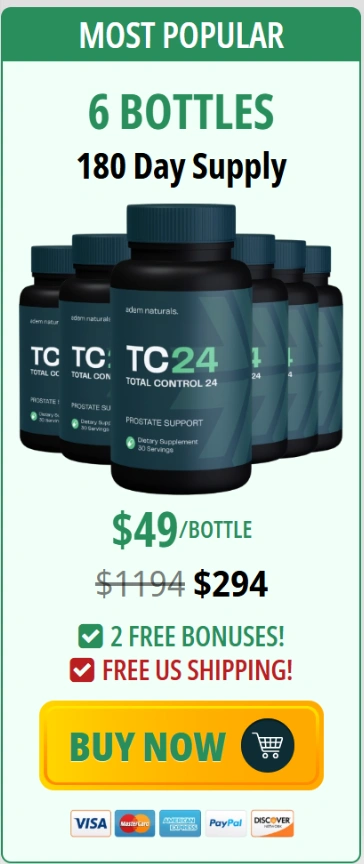 The official website is currently offering up to 75% OFF on TC24 — the biggest discount ever available. The most popular option is the 6-bottle bundle at just $49 per bottle (total $294) with FREE shipping included — giving you the full 6-month supply that thousands of users recommend for complete and lasting prostate shrinkage, urinary flow restoration, and total vitality transformation. Plus, the 6-bottle bundle comes with 3 FREE exclusive bonuses: “Marathon Man Tonight,” “Peak Performance Blueprint,” and the “72-Hour Liver Cleanse” guide — a combined value of nearly $150, all completely free. An 87% majority of customers choose the 6-bottle option to ensure they have enough supply to experience the full compounding benefits of TC24. A 3-bottle bundle is also available at $59 per bottle with FREE shipping for those who want to start with a shorter supply, and a single bottle is available at $69 for those who want to try it first.