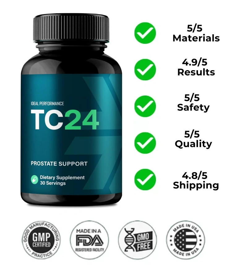 Our research revealed that TC24 is produced by a reputable company based in the United States, in a GMP-certified facility using only all-natural, Non-GMO ingredients — claiming to have uncovered the true root cause of prostate enlargement and developed the only natural 2-step method to shrink the prostate, restore urinary flow, and reclaim vitality and confidence — all without surgery, prescription drugs, or dangerous side effects.
